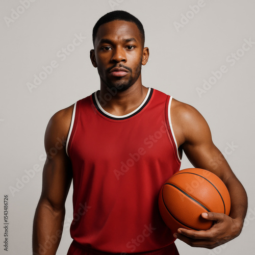 basketball, african american, athlete, ball, muscular, sport, sport, man, player, determination, skill, fitness, physical exercise, gym, active, lifestyle, health, strength, powerful, healthy, strong, muscular, physique, body, fit, training, exercise, cardio, weightlift, practice, game, court, competition, uniform, red, holding, looking, determined, serious, confident, poised, athletic, sportsman