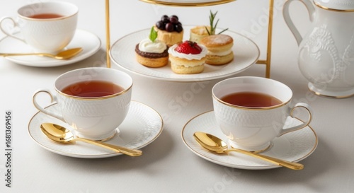 afternoon tea, tea, teacup, teacup, cake, pastry, dessert, food, drink, elegant, luxury, epicure, white, gold, setting, table, tier, tiered, racked, sweet, delicious, catering, treat, indulgence, refreshment, refined, delicate, classic, traditional, lifestyle, party, celebration, event, fine dining, presentation, tabletop, snack, arrangement, bakery, spoon, china, tableware, service