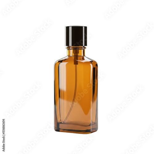 Aftershave splash bottle crafted from amber glass, presented in a 3/4 view with clear contours against a white plain isolated background, full standalone object with no shadows, commercial photoshoot
