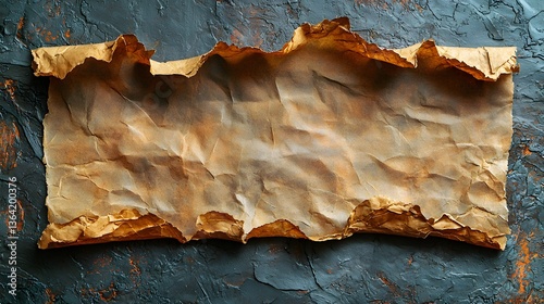 Aged piece of old parchment paper affixed to a wall with subtle texture and rustic charm for artistic displays