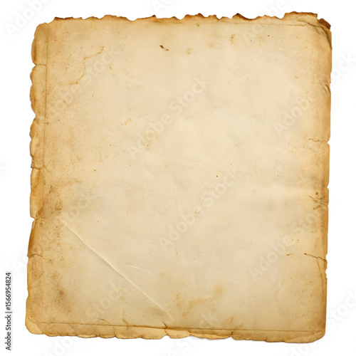 Aged textured paper with torn edges and stains isolated on transparent background