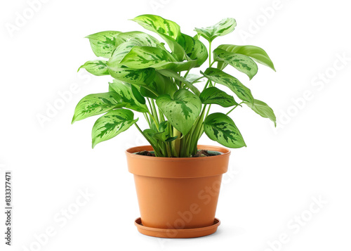 Aglonema Plant in Terracotta Pot on Transparent Background