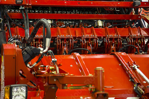 agriculture, machinery, equipment, industry, agricultural, closeup, tractor, machine, farm, rural, crop, part, working, technology, industrial, sowing, vehicle, wheel, steel, factory, occupation, seed, red, dirt, cultivated, colours, metal, blue, farmer, transportation, manufacturing, processing, power, stainless, wheat, modern, construction, cereal, business, copy, background, tube, shiny, agronomy, row, black, new, yellow, green