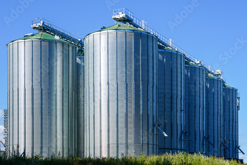 agricultural, silos, tank, storage, drying, dryer, granary, elevator, grain, wheat, corn, soy, sunflower, cereal, cleaning, agro, blue, sky, background, exterior, building, production, export, food, metal, storehouse, store, farming, infrastructure, modern, new, industry, food processing, manufacturing, technology, warehouse, seed, harvest, agribusiness, tower, mill, container, perspective, tank