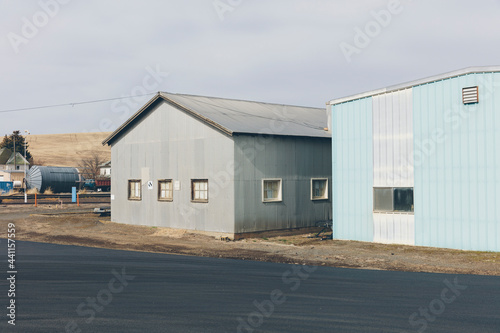 Agricultural storage buildings by a road
