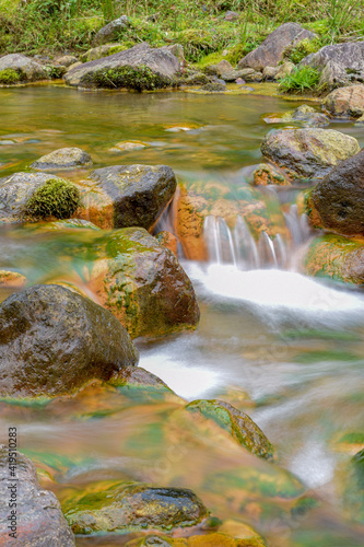 dunk, waterfall, fluvial, stream, nature, landscape, forest, bore, creek, rock, flower, green, mountain, flowing, tumbling, brook, moss, spring, jog, fall, wet, beautiful, wooden