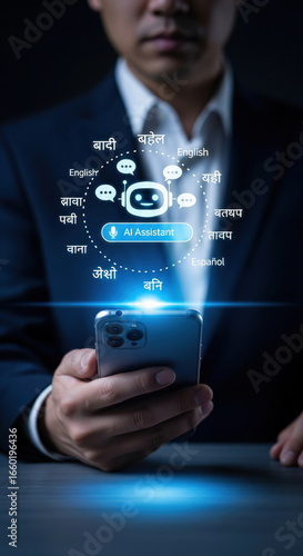 ai, assistant, language, translation, communication, technology, businessperson, smartphone, digital, interface, multilingual, speech, bubble, futuristic, innovation, mobile, application, virtual, glowing, modern, cyberspace, online, smart, touch, screen, connection, artificial, intelligence, professional