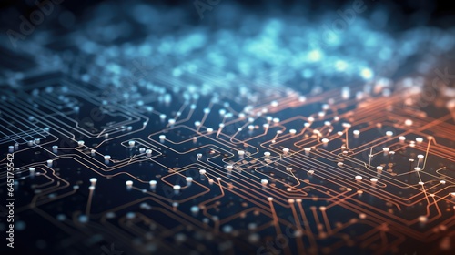 AI generated 3d close-up image of electronic circuit board futuristic computer digital technology concept