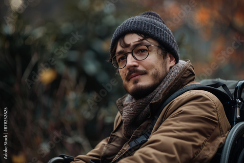 AI generated photo of lonely disabled young person on wheelchair