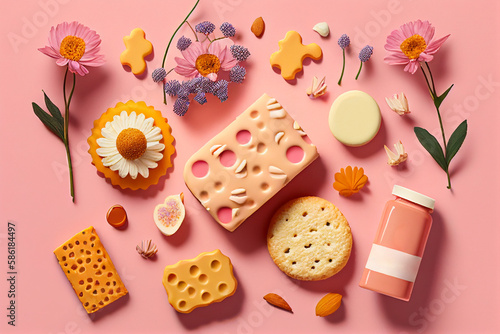 biscuit, cartoon, sweet food, cookie, abundance, variation, shape, blossom, flower, baked, food, epicure, material, science fiction, illusion, cyberspace, abstract, futuristic, vibrant color, artificial intelligence, backview, wallpaper, design, creativity, innovation, asia, china, nobody, color image, horizontal