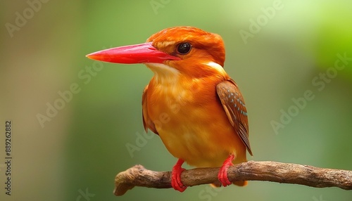 AI generator image of Halcyon coromanda, red kingfisher, found in mangrove forests and island forests in the sea, along waterfronts in dense forests