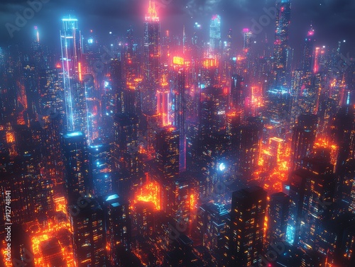AI metropolis, digital innovation, futuristic city, neon holograms