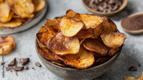 potato chips, chocolate, sweet, meal, food, snack, fried, cooking, indoor, lunch, fast food, crunchy, food and drink, closeup, freshness, healthy eating, homemade, kitchen, selective focus, dinner
