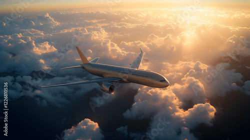 aeroplane, sunset, cloud, flight, travel, sky, aircraft, aviation, gold, hours, up high, the, view, cloudscape, landscape, air, journey, high, altitude, light, sun, ray, scenic, aerial, transportation, passenger, plane, jet, atmosphere, serene, peaceful, majestic, sunrise, evening, horizon