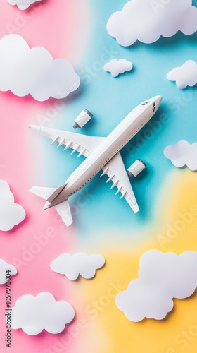 aeroplane, cloud, sky, travel, flight, airline, journey, freedom, blue, pink, yellow, colourful, air travel, transportation, departure, exploration, adventure, vacation, scenery