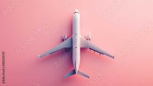 Airplane flying high in sunset skies over soft pink clouds