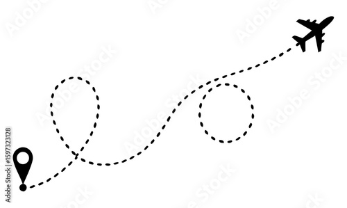 plane, line, path, destination, background, icon, abstract, vector, design, sky, travel, isolated, illustration, concept, white, map, template, black, aeroplane, graphic, silhouette, tour tourism, transportation, air, aircraft, flight, track, fly, dash, dotted, plan, point, route, start, trace, trip, way