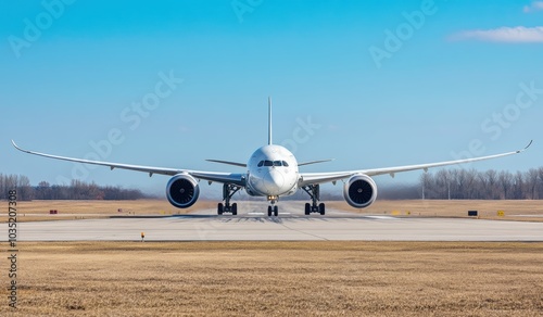 aeroplane, aircraft, take-off, aerodrome, runway, jet, travel, transportation, air travel, aviation, sky, blue skies, cloud, wing, engine, tail, landing gear, ground, grass, field, departure, journey, airliner, flight, air traffic, airline, air transport, air show, airforce, freedom, speed, power, motion, take-off