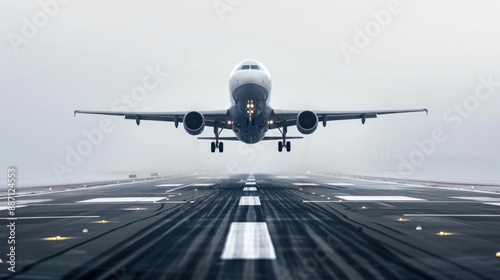 Airplane Taking Off on Runway at Dusk. Generative ai.