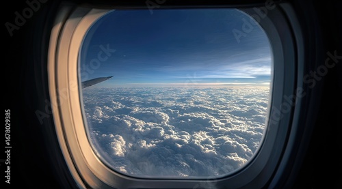 Airplane window view of clouds
