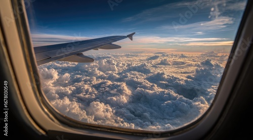 aeroplane, window, cloud, sunset, sky, flight, travel, view, high, altitude, plane, wing, cloudscape, cumulus, fluffy, huge, expansive, aerial, horizon, light, gold, orange, colourful, bright, scenic, journey, trip, destination, white, grey, dark, sunrise, dusk, aviation, perspective, nature, beauty, stunning, amazing, marvellously, vacation