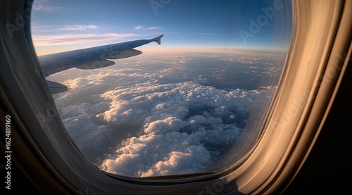 aeroplane, window, cloud, mountain, sky, wing, sunset, sunrise, flight, travel, high, altitude, view, scenic, landscape, aerial, perspective, cloudscape, mountain chain, snowy, summit, earth, plane, atmosphere, tour tourism, journey, trip, horizon, sunshine, light, exterior, passenger, air, vacation, panorama, aviation, cabin, outside, wingspan, mountain