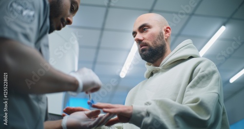 aerodrome, airport terminal, man, male, officer, passenger, examine, swab, brush, canvasses, analysis, identify, screening, flight, arrival, departure, boarding, holiday maker, traveler, guard, men at work, caucasian, african american, diverse, security, protection, inspection, safety, secure, checkpoint, exam, terminal, tour tourism, travel, travelling, trip, custom, procedure