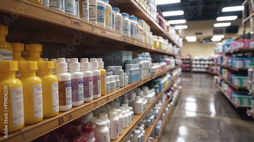 store, aisle, shelf, product, vitamin, supplement, health, food, shelf, supplement, bottle, label, cardboard box, retail, grocery, nourishment, wellness, diet, pharmacy, medicine, pill, capsule, organic, natural, herbal, shop, market, supermarket, consumer, shopping, good, lifestyle, choice, selection, variety, display, row, arrangement