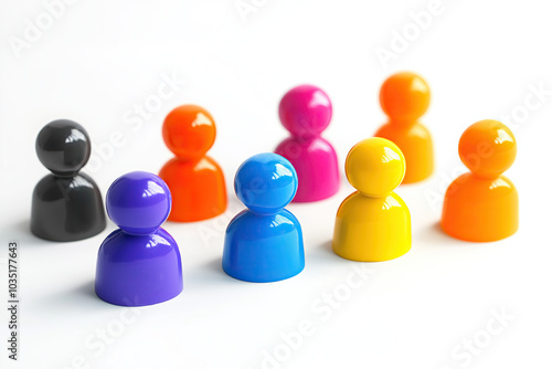 AItems of diversity, figures made of plastic representing different personality characteristics, white background, photorealistic