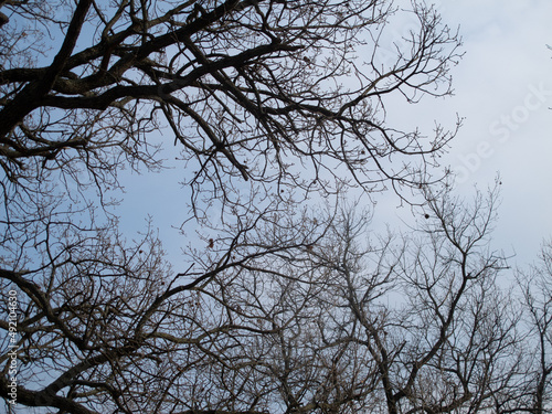 tree, heaven, nature, blue, winter, forest, branch, forest, spring, countryside, autumn, season, coolness, plant, white, green, leaf, snow, bare, high, cloud