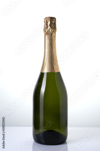 Alcoholic background, champagne without label on a light background. Concept of Festive alcoholic beverages.