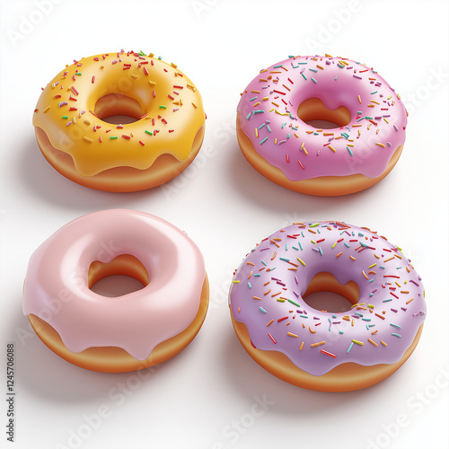 food, donut, dessert, cake, sweet, isolated, chocolate, white, snack, pastry, delicious, breakfast, rose, ice, sugar, bakery, fresh, closeup, vector, cream, sprinkle