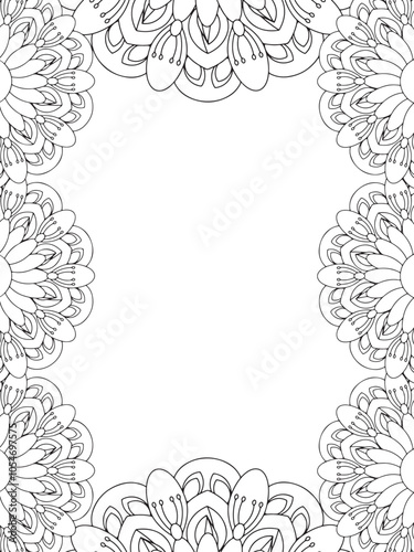 All these designs are hand-drawn and unique Flower Border is a Beautiful black and white illustration for aadult coloring book, This is a printable Beautiful Zentangle Coloring page for KDP Interior,