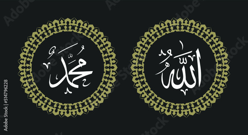 allah muhammad arabic calligraphy with classic frame and vintage color