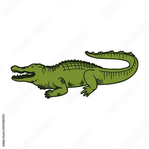 Alligator art color sketch alligator drawing art engraving generative vector illustration. Scratch board imitation. Black and white image