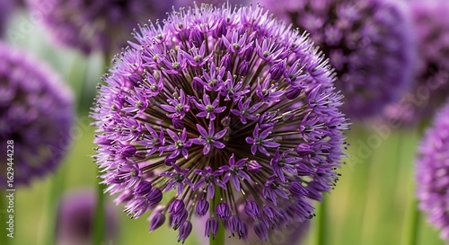 Allium blooms showcase a stunning display of purple floral symmetry and intricate design amidst a