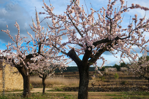 almond blossom, blossom, almond tree, tree, tree, fruit farm, spring, flower, pink, white, spain, new life, fragile, nature, landscape, countryside, rural, scenic, scenery, blossoming, flower, beautiful, season, flora, field