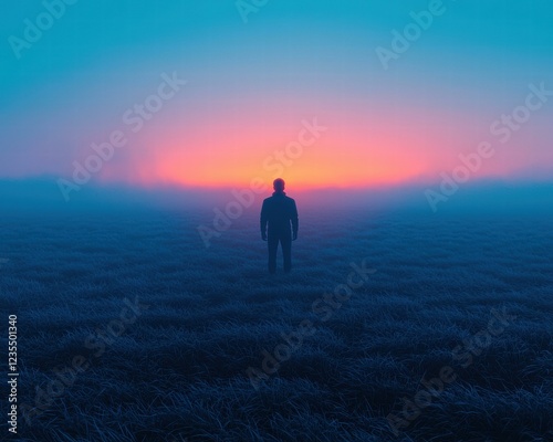 sunrise, person, field, morning, alone, nature, landscape, contemplation, quiet, misty, man, outdoors, sunset, one person, silhouette, adult, grass, businessman, standing, fog, mountain, success, sunlight, backlit, blue, dawn, backview, dusk, sun, copy space, looking, loneliness, environment, dark, solitude, religion, mountain peak, meadow, summer, walking, tranquil scene, adventure, horizon, cloud, sky, suit, freedom, spirituality, idea