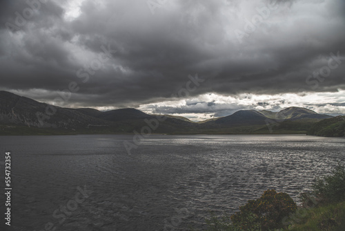 water, landscape, sky, lake, nature, cloud, cloud, river, sea, mountain, beach, grass, travel, summer, horizon, mountain, coast, view, green, sand, ocean, scotland, gorse, britain, britain, lake, great britain