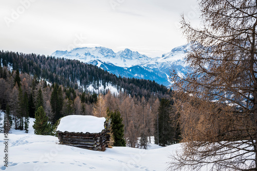 alps, background, beautiful, blue, cabin, chalet, cold, dolomite, frost, holiday, ice, italy, landscape, mountain, mountain hut, mountain, nature, nobody, panorama, panoramic, resort, rock, silence, sky, snow, snowy, tour tourism, travel, tree, vacation, vale, view, white, winter landscape, winter scene, wood, timberland