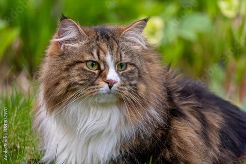 majestic, fluffy, portrait, nature, wild, felino, pet, animal, fur, gaze, captivating, beautiful, photo, green, grass, whisker, ear, eye, closeup, detailed, domestic, mammal, breed, purebred