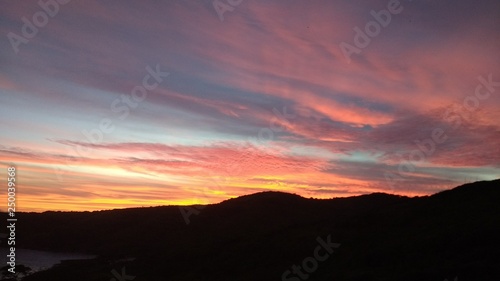 sunset, heaven, cloud, sunrise, sun, orange, nature, landscape, dusk, red, mountain, yellow, blue, evening, sunshine, spark, beautiful, dramatic, horizon, dawn, summer, morning
