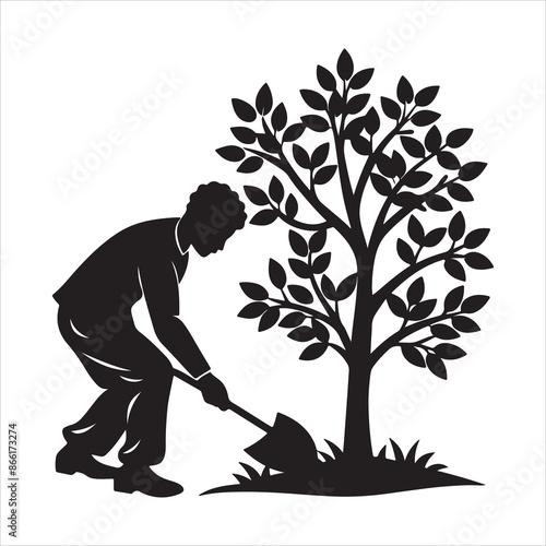 A-man-planting-tree-silhouette-on-white-background AI generated