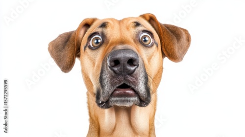 dog, puppy, canino, pet, animal, mammal, surprised, amazed, shocked, astonished, wide-eyed, expression, face, closeup, head shot, portrait, brown, tan, fur, doggy, cute, funny, humor, comic, amusement, reaction, emotion, feeling, look, gaze, adorable, sweet, friendly, playful, happy, cheerful, excited, fear, anxiety, wonder, curiosity, bewilderment