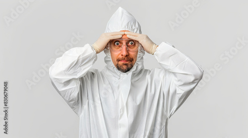 senior, man, white, surprise, elderly, protective, suit, gesture, amazed, health care, safety, goggles, looking, shocked, expression, curious, prevention, hygiene, biohazard, pandemic, virus, protection, contamination, research, medicals, eye, caution, male, adult, sterile, laboratory, isolated, clean, environment, concern, serious, outbreak, equipment, emergency, response, elder, person, control