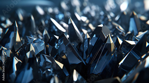 Amazing bright and shiny Obsidian crystal cluster background. Jewel mineral detailed macro. Generative AI