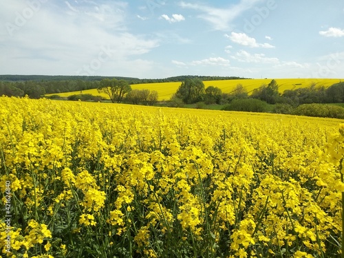 agriculture, background, beautiful, blooming, blossom, blue, canola, cloud, country, countryside, environment, farm, farming, field, flower, green, land, landscape, meadow, nature, oil, oilseed, plant, rape, rapeseed, rural, season, seed, sky, spring, summer, sunny, yellow