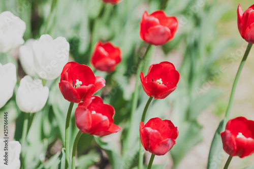 Amazing colorful tulips field. Nature and flowers concept. Close up. Background.