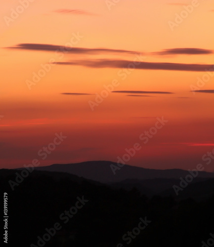 Amazing colourful sunrise view in mountains near Vipava valley, Slovenia