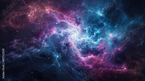 Amazing cosmic backdrop and nebula swirling purple and blue colors in outer space